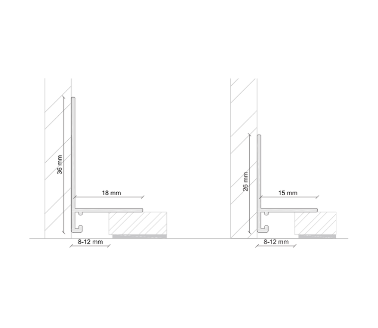 Алюминиевый анодированный L-образный щелевой плинтус идеально подходит для использования с любым типом напольного покрытия. Он эффективно скрывает стык между стеной и полом, обеспечивая при этом необходимый технический зазор для напольного покрытия. Минимальная толщина напольного покрытия должна быть 5 мм. Каждый комплект длиной 2.5 метра включает в себя 7 пружин.